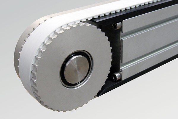 同步带上的齿与滑轮上的齿相匹配。有一个支撑结构,输送机框架,以支持皮带和保持滑轮到位。以及一些设备,通常是一个电机,来驱动传送带。这些输送机有许多典型的输送机配件,如皮带张紧和跟踪装置,输送机侧轨,安装支架和电机控制。
