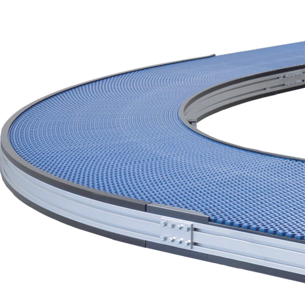The KMF-P 2040 features a usable width of just 30 mm less the outside frame width, makes mk's curved modular belt conveyor one of the most streamlined in the marketplace.